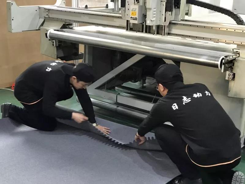 將毛氈從底部輥筒中穿過,并將兩邊開齒部位置于切割臺的一邊,方便后續(xù)接頭。
