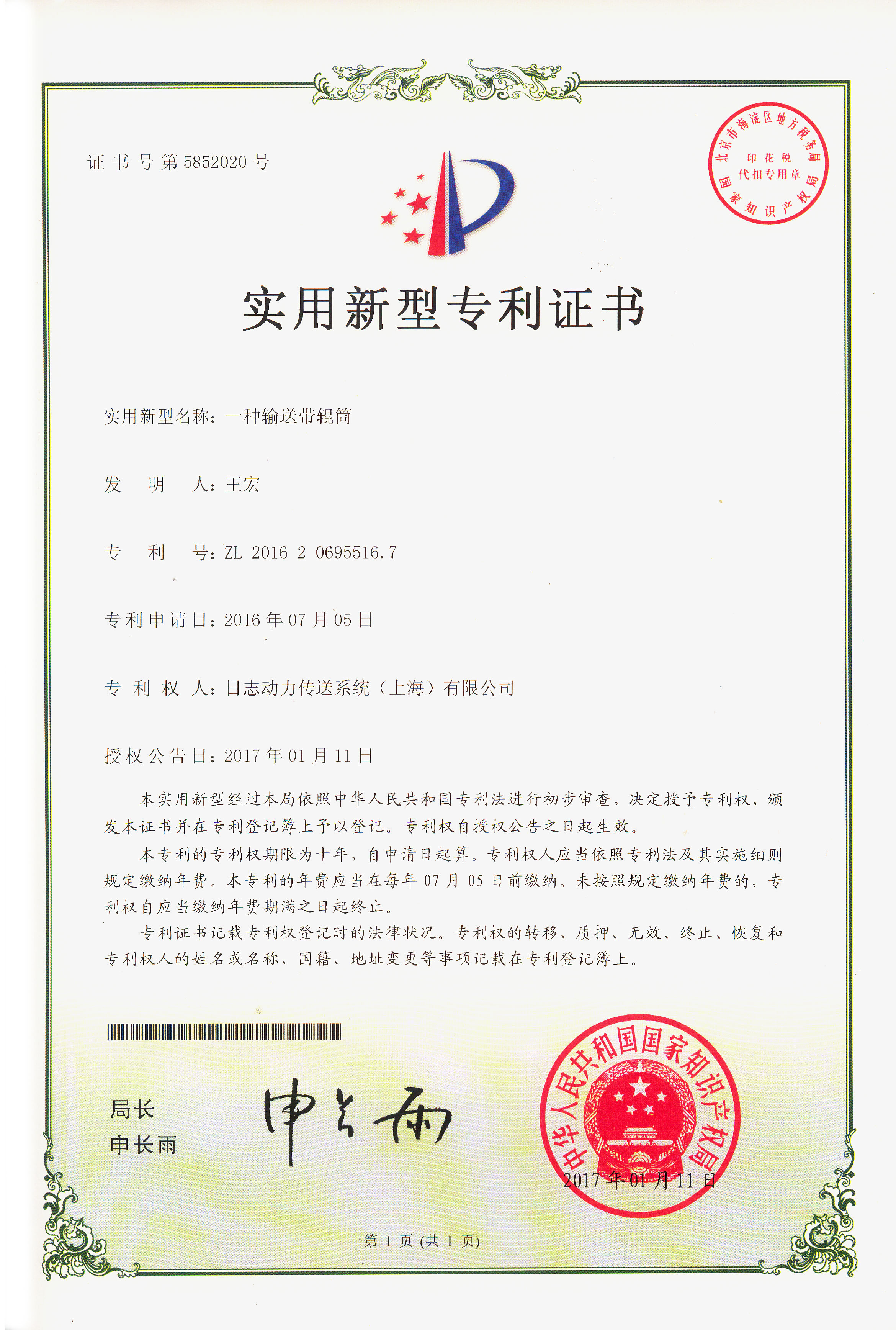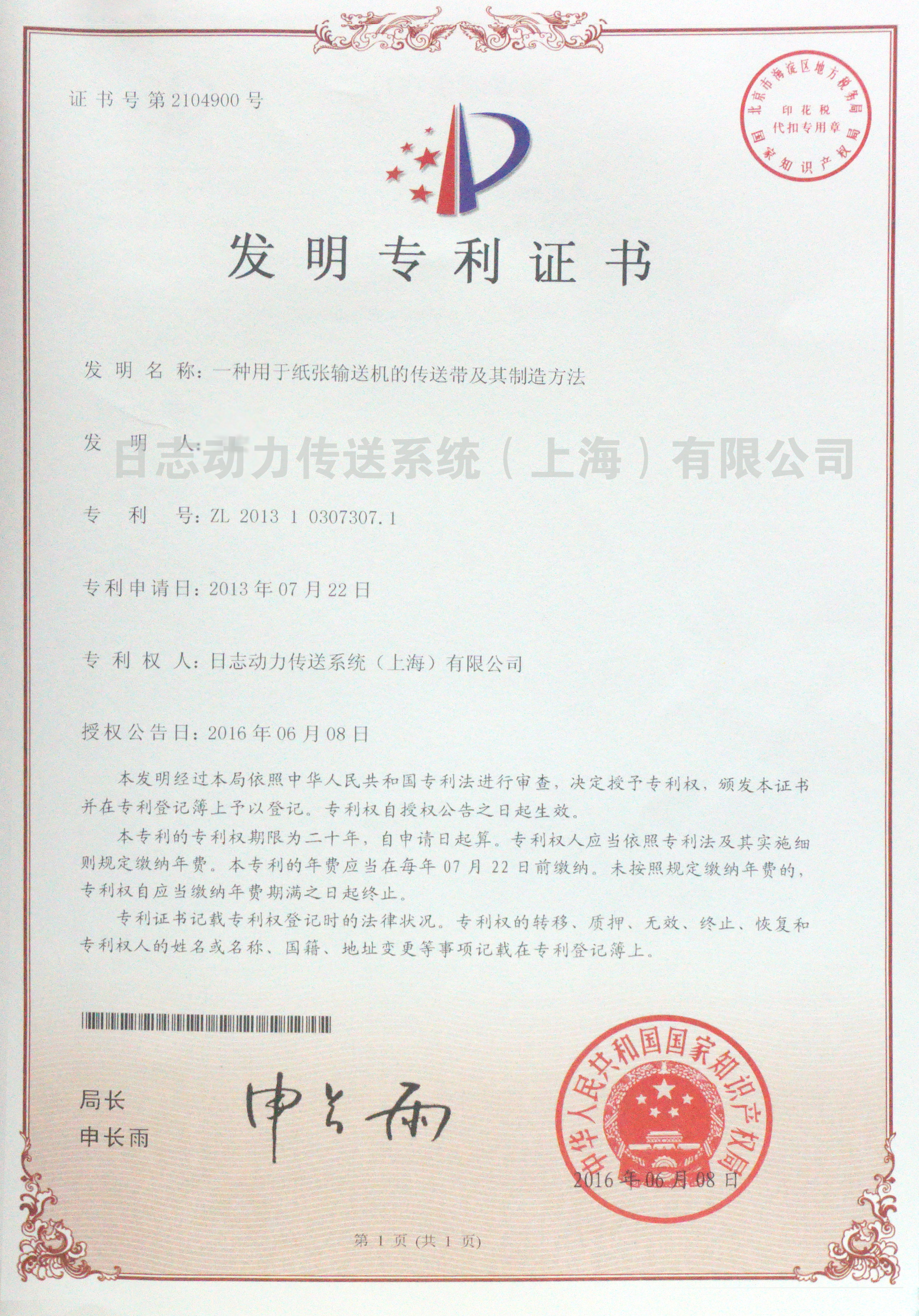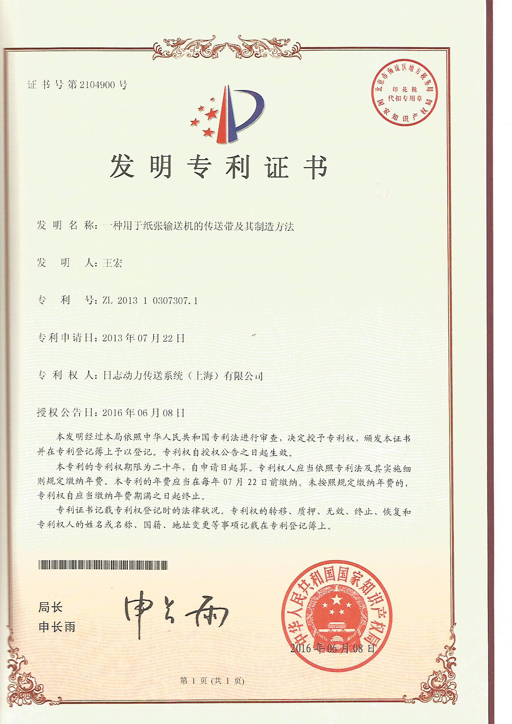 發(fā)明專利證書