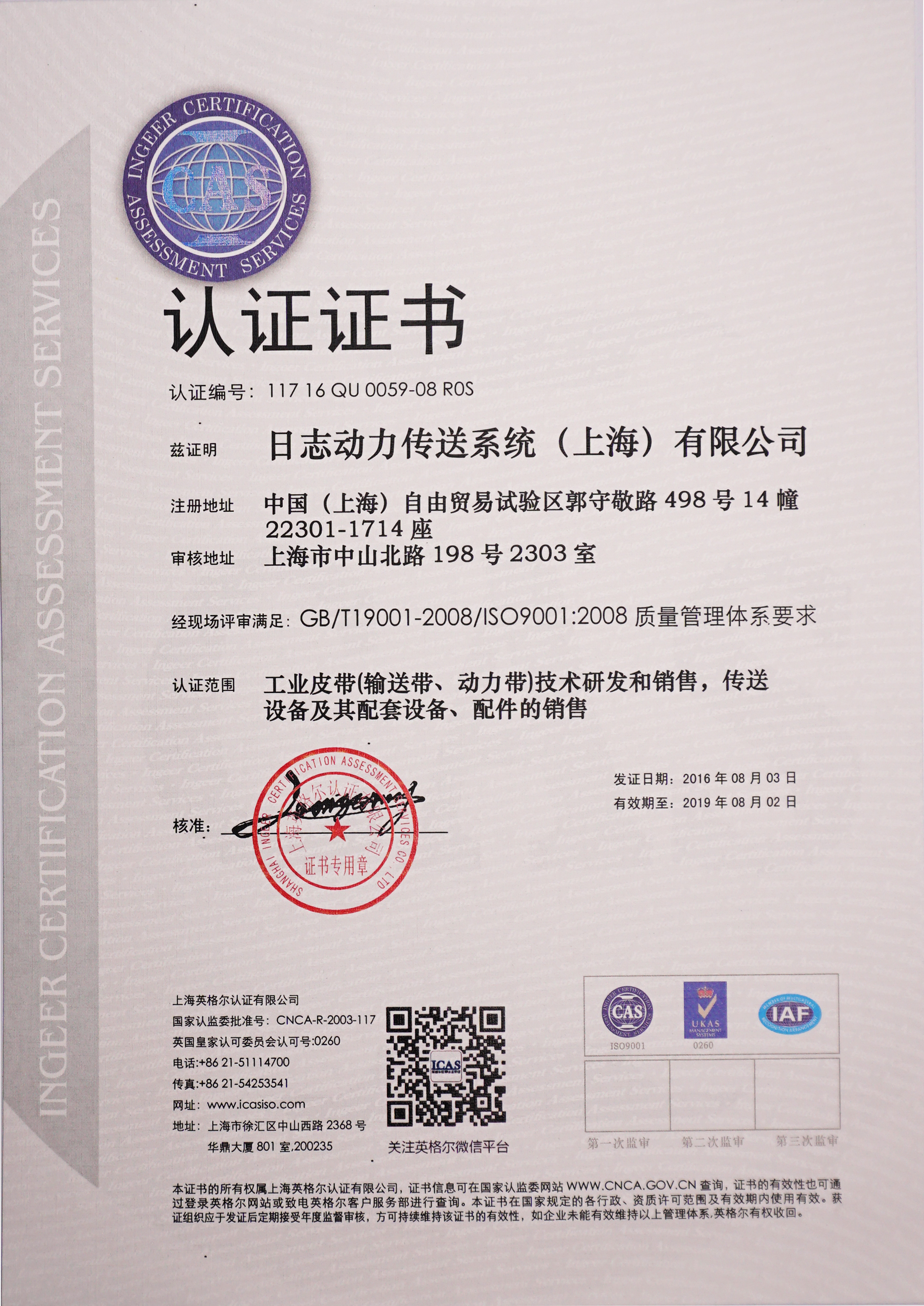 質(zhì)量管理體系認證證書