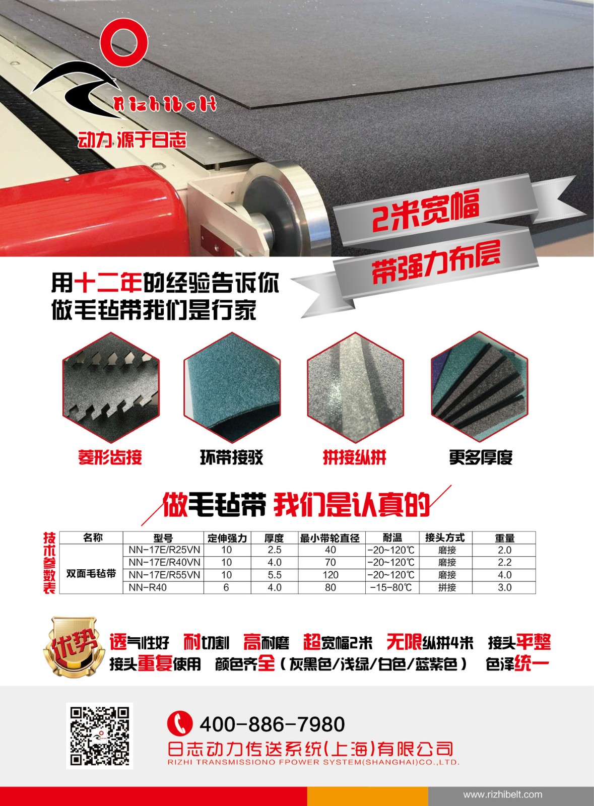 毛氈帶 雙面毛氈帶NN-17E/R25VN 綠色 耐切割輸送帶 日志動力