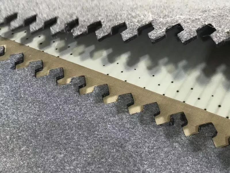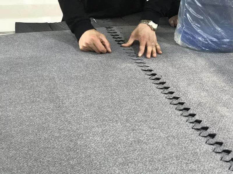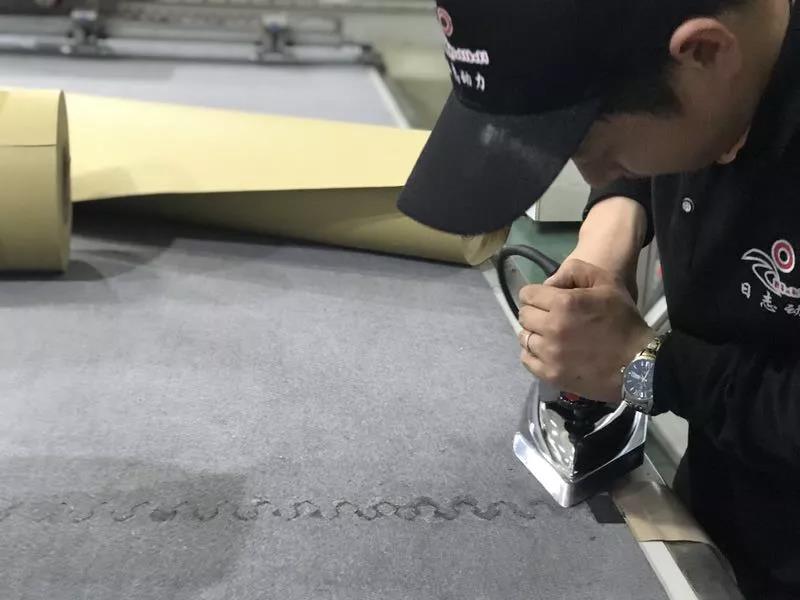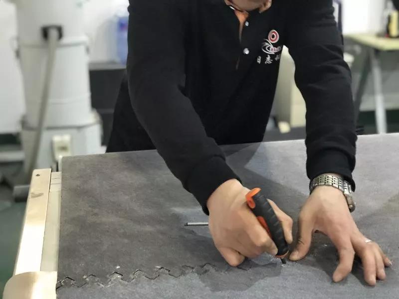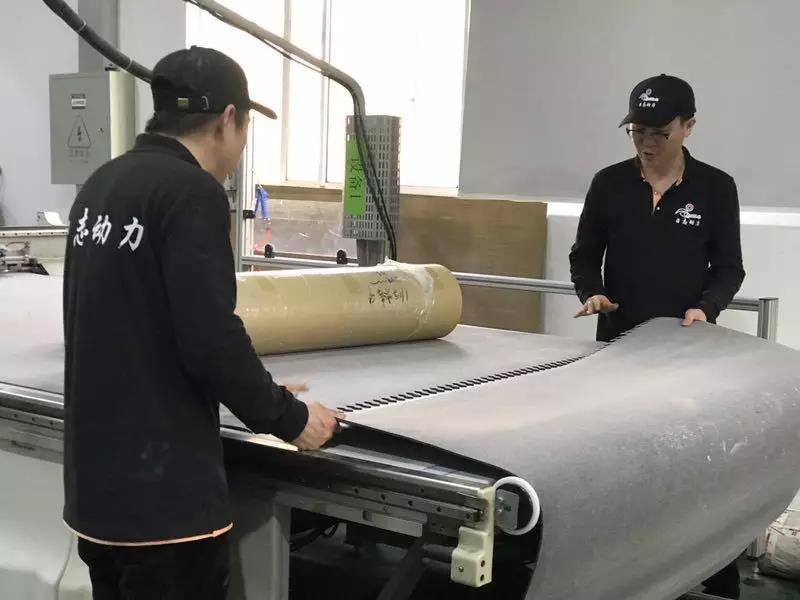 將毛氈從底部輥筒中穿過,并將兩邊開齒部位置于切割臺的一邊,方便后續(xù)接頭。