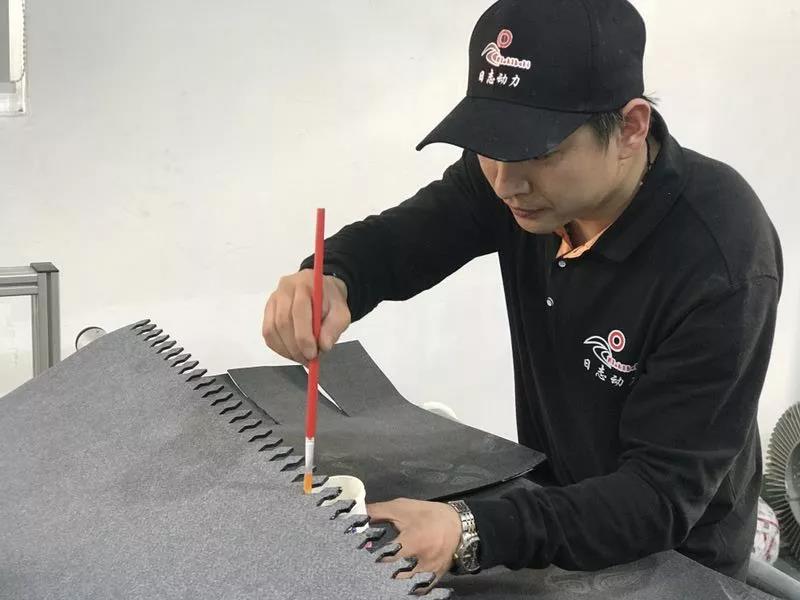 將膠水均勻的涂在菱形齒的周圍。注意在涂膠水時在下方墊上些廢紙,防止膠水漏到臺面,堵住吸風(fēng)口。