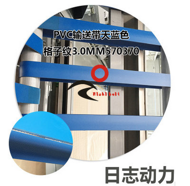 批量生產(chǎn) pvc輸送帶天藍(lán)色格子紋3.0 pvc平面輸送帶